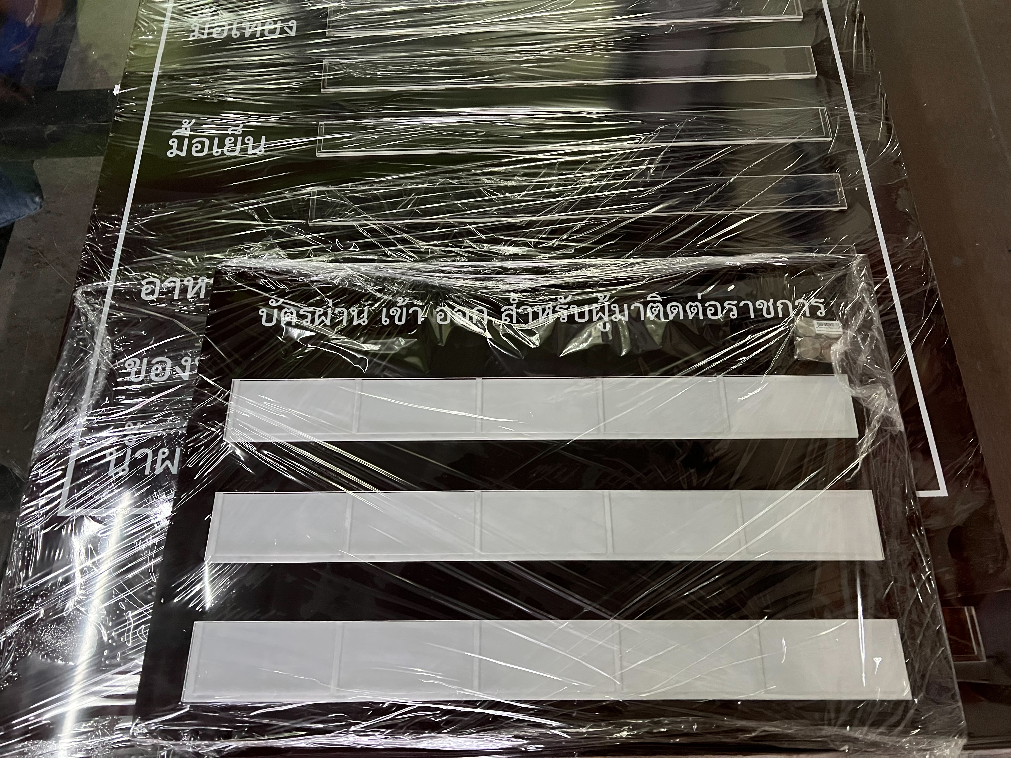 งานป้ายอะคลิลิกใสติดสติ๊กเกอร์ เมนูอาหารประจำวัน และ บัตรผ่านเข้าออก ของค่ายทหารสุรนารี จ.สุรินทร์