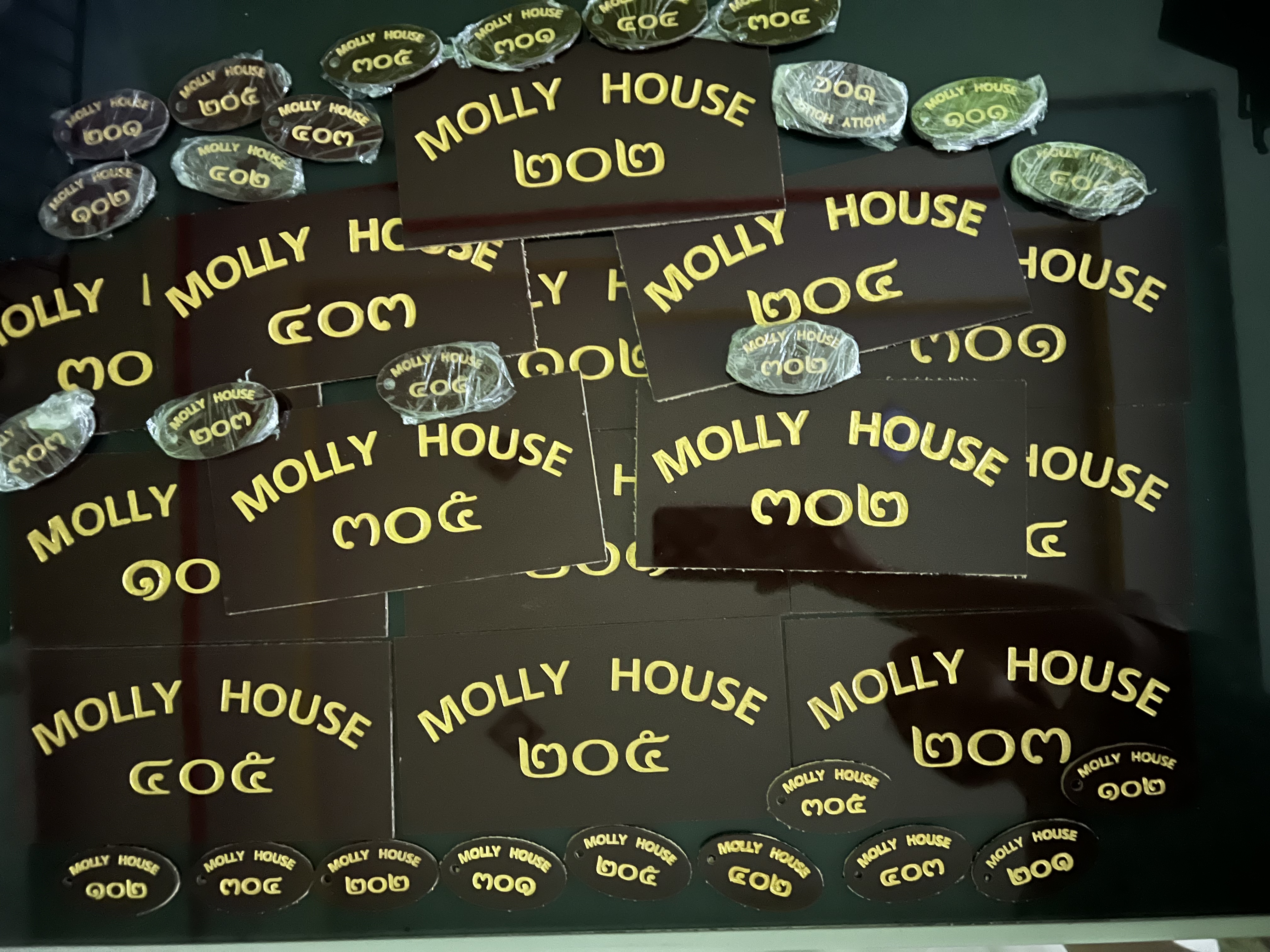 งานอะคลิลิกป้ายห้องพัก และพวงกุญแจ หอพัก molly house แถวตลาด